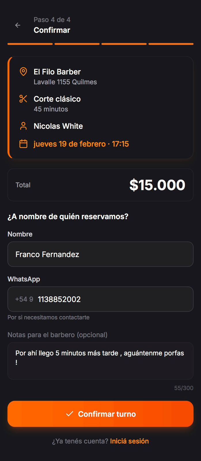 Perdés al menos 2 cortes por semana organizando turnos por WhatsApp